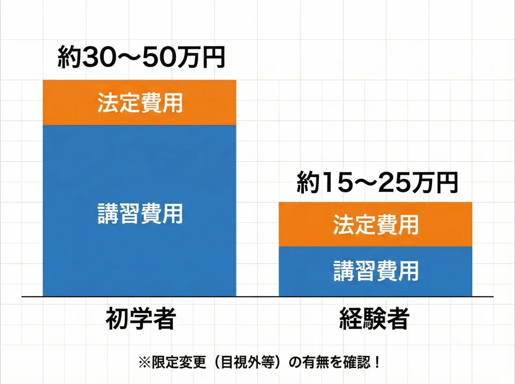 費用や講習時間は各講習機関が設定しているため、同じ「経験者」でも見積もりが大きく変わることがあります。