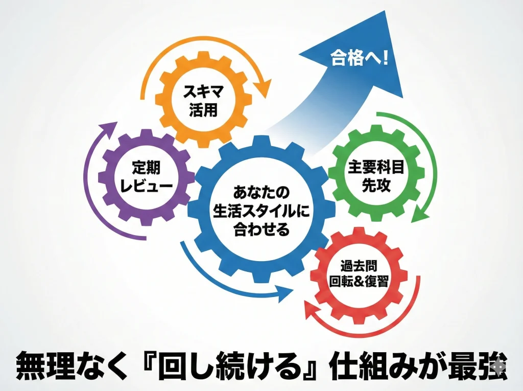 社会人が働きながら合格を狙うなら、気合いより仕組みです。