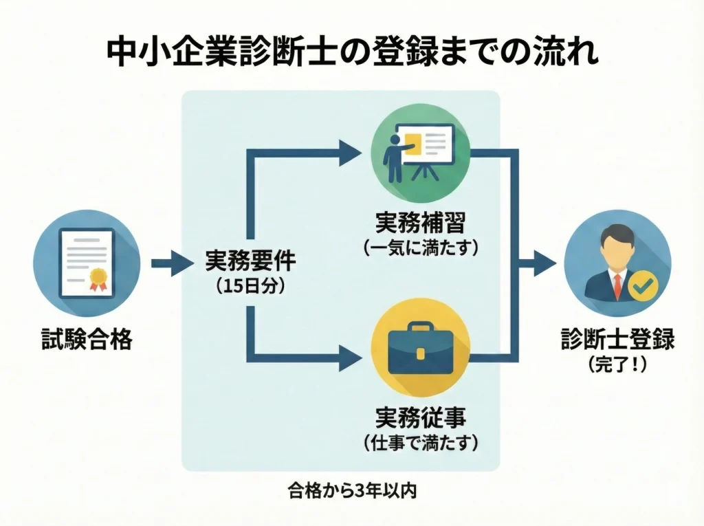 中小企業診断士に合格したあと、いちばん最初にぶつかりやすいのが「登録」と「実務」の話かなと思います。